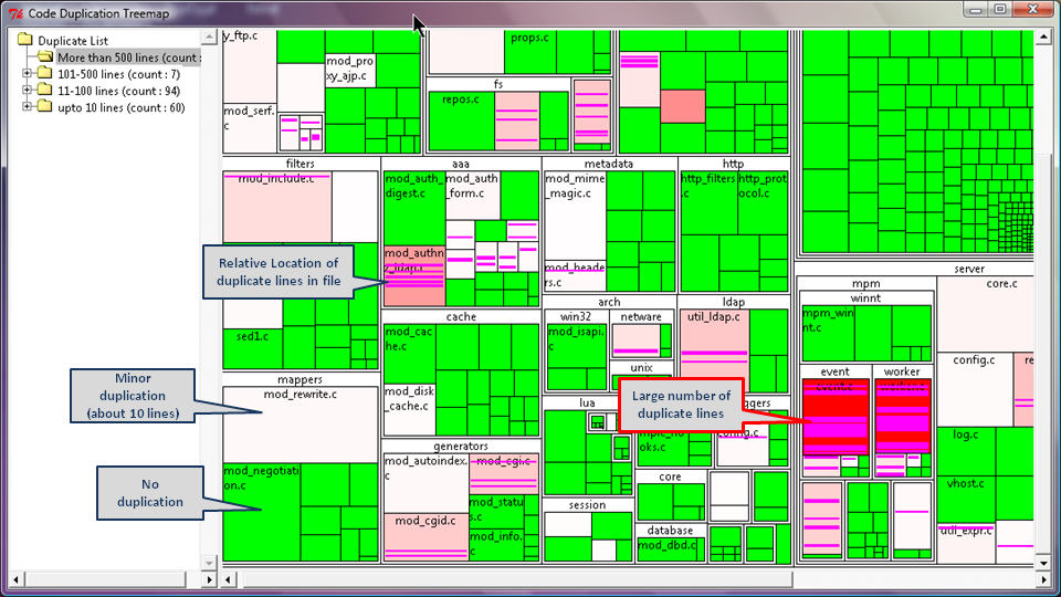 - Duplicates found in Apache httpd server source using CDD (Complete List Httpd )