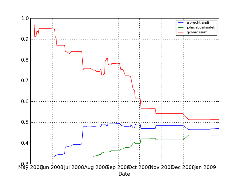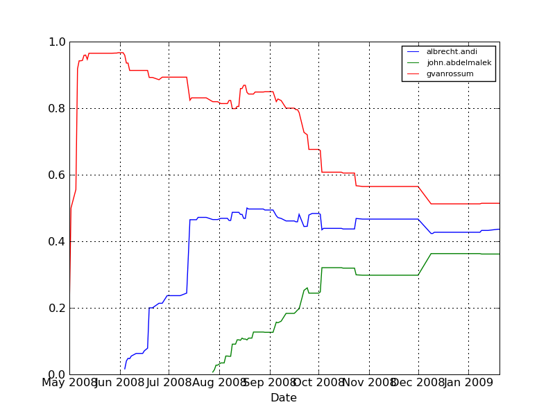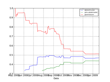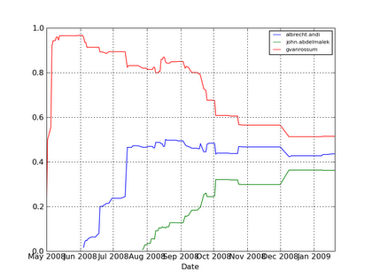 Some background on RietVeld Project : This project is started in May 2008. So data is available for 8-9 months. It is hosted on Google code and written in Python. The analysis is based on data upto 25 Jan 2009 (i.e. upto revision 392)