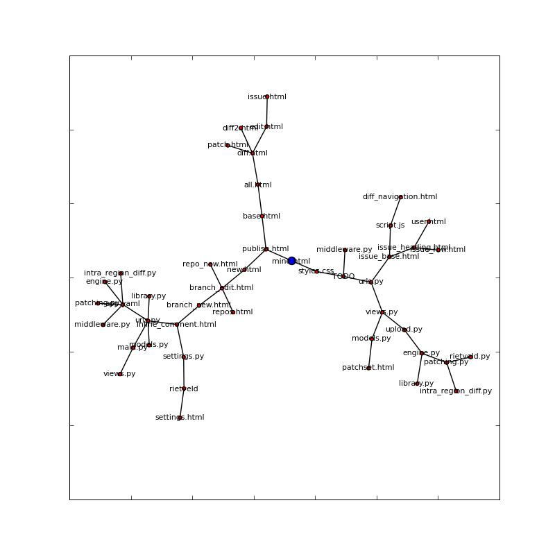 - A link (or edge) is created between two files when the files are edited as part of single revision