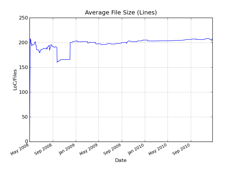Average file size is relatively small and it is now stabilized. To me it indicates the quality and care of the developers. |