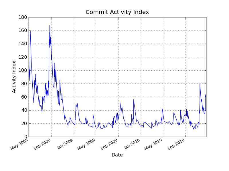 File count is stabilizing. Addition of new files is not so frequent. Its an indication that major part of feature development is done and now the project is slowly going in maintainance phase. |